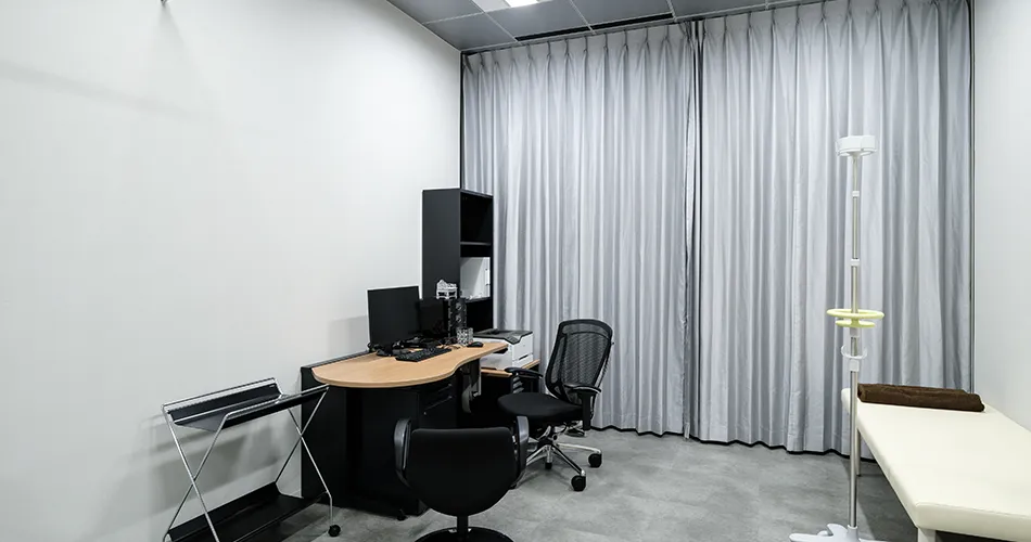 また、大きな窓面に面している為、室内がとても明るく開放感と清潔感があります。治療中にテラスや南青山の景色を眺める事ができるのもSENSHIN CLINIC様の特徴となっています。