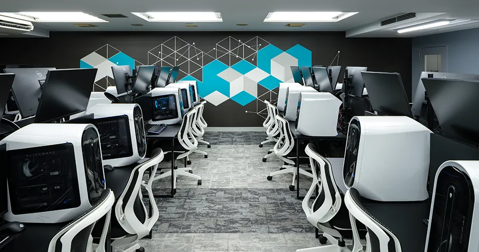 特注ガラス黒板と開放感のある全面ガラスで最新の教育空間を実現