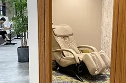 音や視線を気にせずリラックスできるソファやマッサージチェアを設置しています。