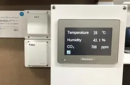 また、空気質センサーを設置しオフィス内の温度、湿度、CO2濃度をリアルタイムに確認できる環境にしています。