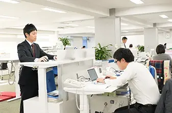 当社は全支店、全社員対象に上下昇降デスクを導入し、立って働くスタイルを推奨しています。