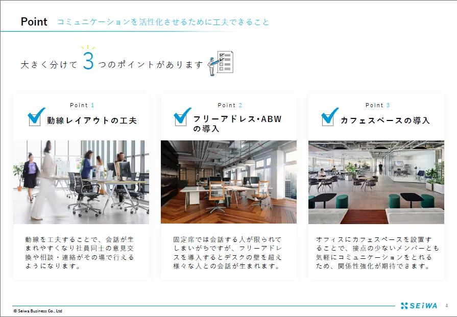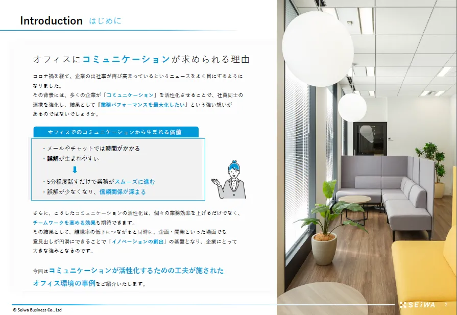 本資料では、コミュニケーションを活性化させる工夫が施されたオフィス環境の事例をご紹介いたします。
