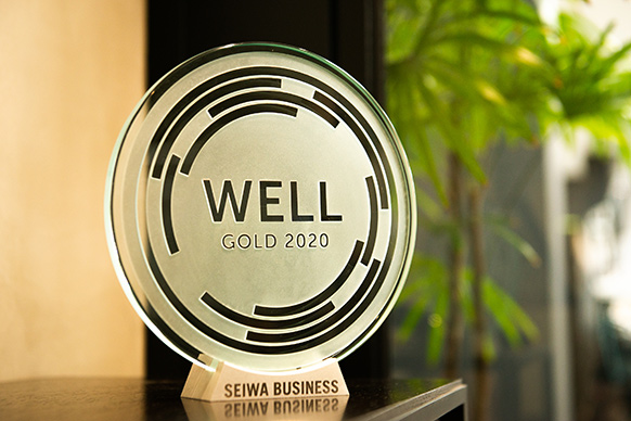 WELL認証とは健康・快適性に焦点をあてた世界初の建物・室内環境評価システムです。社員の健康や、快適に働くには、を考えオフィス環境を整えています。