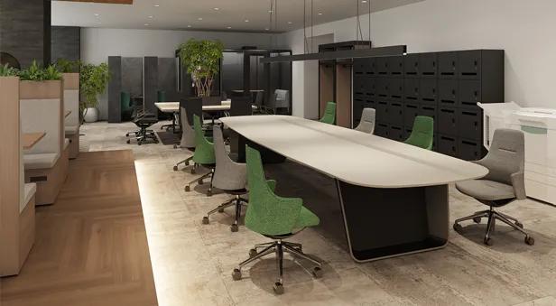 - 社員の健康やWell-beingにつながる電動昇降デスクや、カフェテリア家具