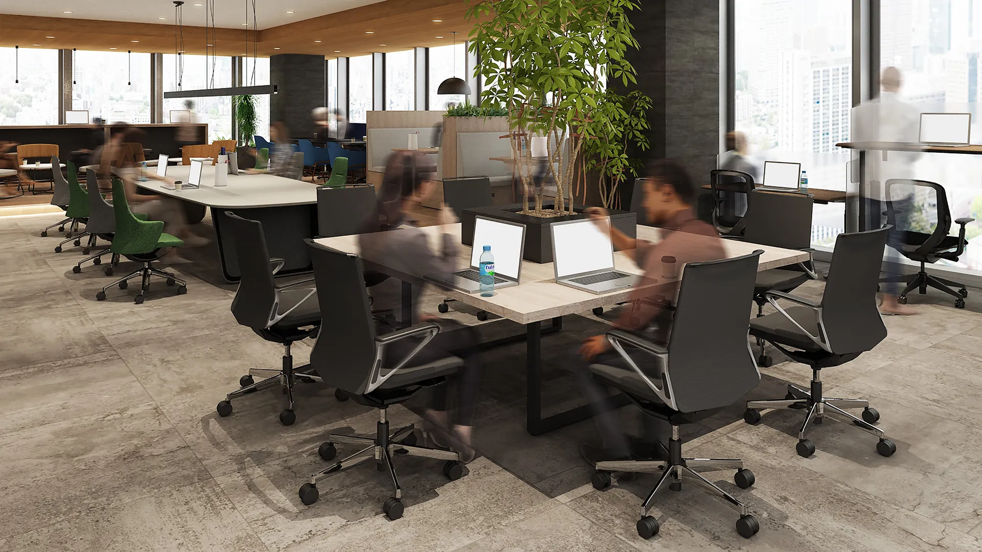 - 社員の健康やWell-beingにつながる電動昇降デスクや、カフェテリア家具