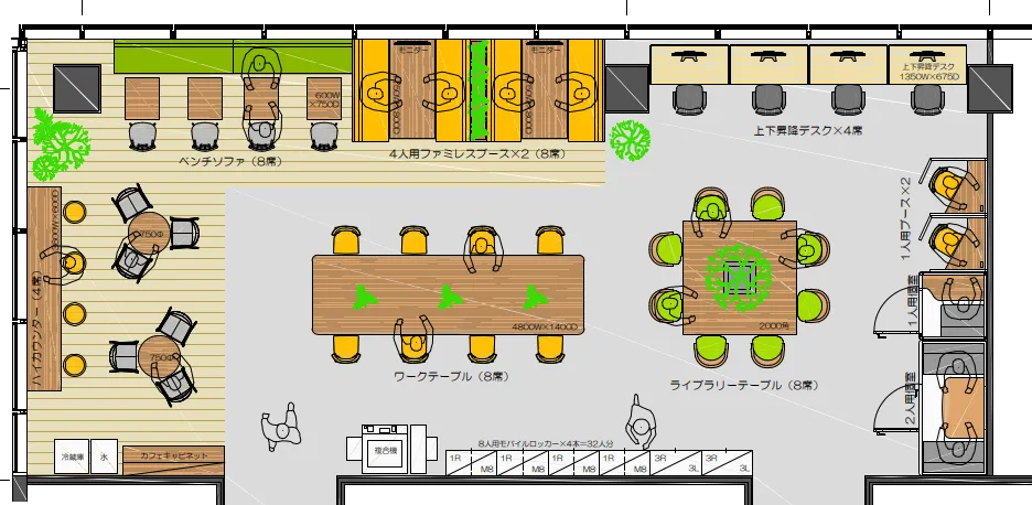 ワークブースとは、1人~6名程度が集中して執務をしたり、