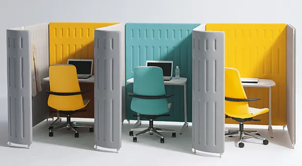 ボックス型のブースまでとはいかないけど、1人1人が集中して仕事をしやすい環境を創ったり、軽いオンライン会議がしやすいような空間を作ることができるのが、「パネルタイプ」です。