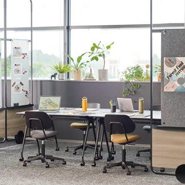 ボックス型のブースまでとはいかないけど、1人1人が集中して仕事をしやすい環境を創ったり、軽いオンライン会議がしやすいような空間を作ることができるのが、「パネルタイプ」です。