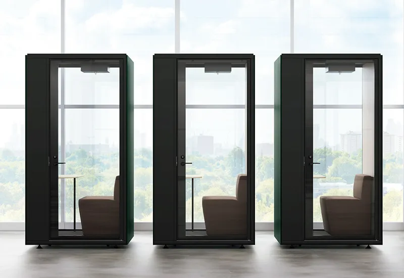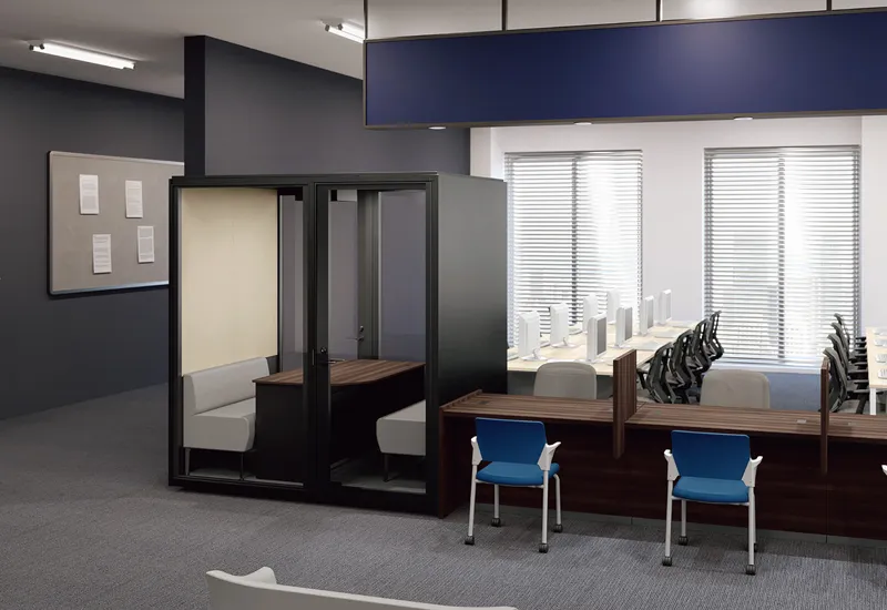 吸音パネルがワーカーを包み込むミニマムサイズのワークブース