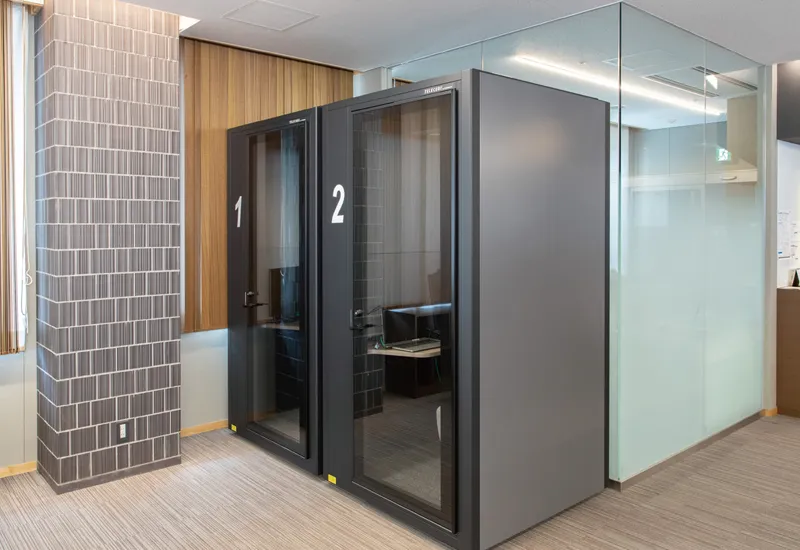 - 個室型のワークブースならば驚くほど静かな環境でWeb会議ができます