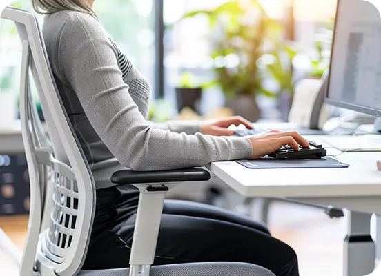 人間の身体的な能力や限界に関するもので、姿勢、作業環境、動作、筋肉負荷、操作機器などに焦点を当てています。例えば、オフィスチェアやキーボードの設計は身体的な人間工学に基づいています。オフィス環境をより快適で効率的にするためには、人間工学に準拠した環境づくりが不可欠です。これは、人間の身体的、精神的なニーズに合わせてデザインやレイアウトを調整する考え方で、主に、デスクや椅子の設計、その他、ツールの配置などが挙げられます。