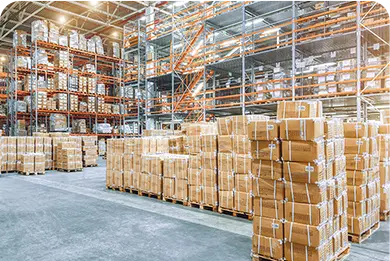 物流施設では最適な物流機器・物流システムをセレクトし現状の効率改善などコンサルティングから設備の導入までおこないます。
