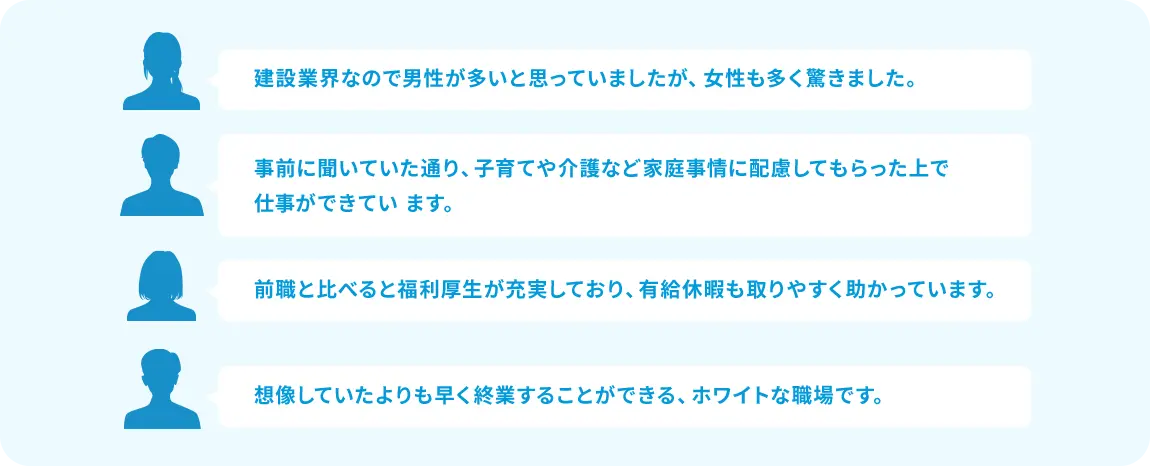 子育てや介護など、社員それぞれのワークライフに適応するための勤務制度が充実しています。