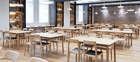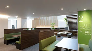 社員食堂をエリアごとに家具を分け、利用する人数や時間など様々な要望に対応でき、毎日飽きない工夫をしました。