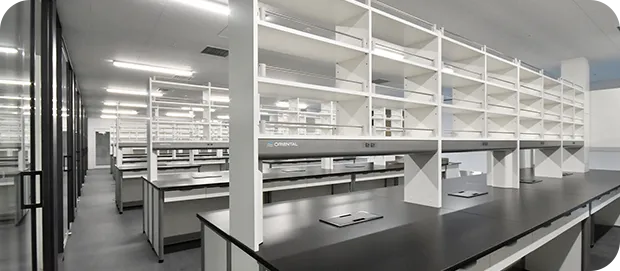 検査室内に安全キャビネットやクリーンベンチを設置、それに伴う電気や空調工事、内装工事を行いました。 -