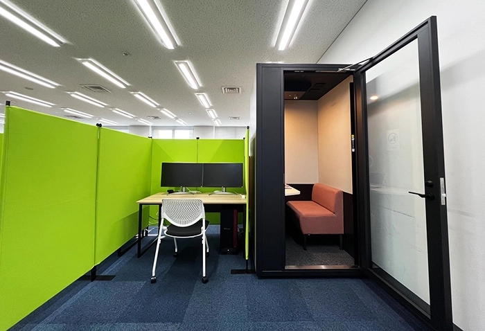 ワークナップブースとテレキューブを並べてご使用も可能です。※ブース内は実際と異なります。